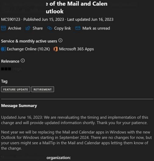 6月20日,微軟計劃將新版Outlook取代現有的Windows郵件和日歷應用。然而,這一決定引起了Microsoft 365用戶的反對,迫使微軟重新評估變化的時間和方式。