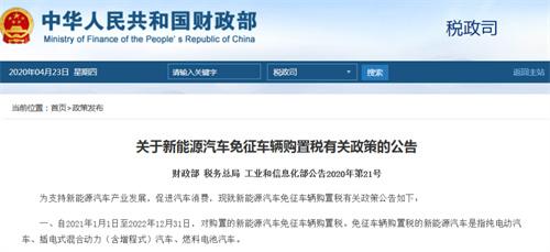 在北京時間2023年的6月21日我國財務(wù)部稅務(wù)總局和工業(yè)信息化部門共同發(fā)布的有關(guān)于延續(xù)優(yōu)化新能源汽車購置稅減免的公告,內(nèi)容中顯示在2024年1月1日到2025年12月31日購買的新能源車輛,將會享受免除車輛購置稅的優(yōu)惠政策。