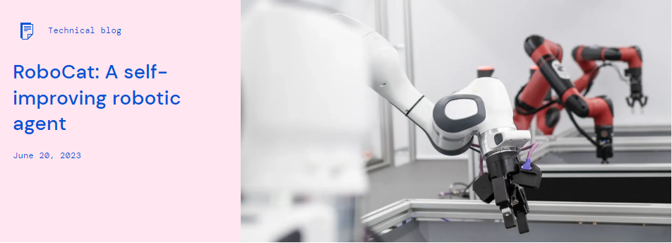 谷歌旗下的DeepMind于美國東部時(shí)間6月20日,展示了在機(jī)器人上使用的AI智能體RoboCat,只需要進(jìn)行100次的演示訓(xùn)練,就可以將任務(wù)解決,還能進(jìn)行自我改進(jìn)。DeepMind表示這是全球第一個(gè)能夠適應(yīng)和解決多重任務(wù)的智能體。