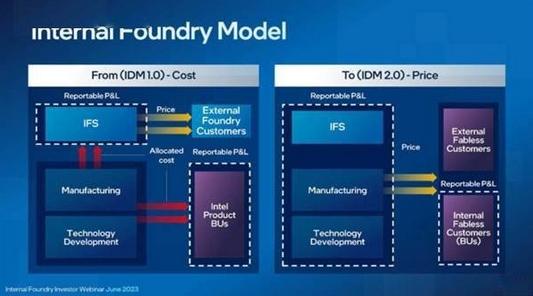 與AMD不同,英特爾拆分了晶圓制造業務,但并未出售,仍然是公司的核心部門,這種模式被稱為IDM 2.0。英特爾希望拆分出的IFS代工部門既能接受自家的訂單,也能接受外部的訂單,與臺積電和三星展開市場競爭。