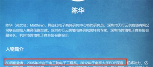之前有一家媒體對于陳華做了相應的介紹表示陳華是一名80后,在2005年的時候畢業于南工院電子工程系,后來加入到了南京大學的EDP。在南京大學商學院的官方網站中顯示高層管理培訓與發展中心,簡稱為EDP,這是南京大學商學院之中專門為各大企業的高層管理人員提供培訓的機構。
