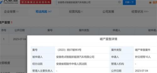 經過天眼查APP平臺的數據顯示,安徽奇點智能新能源汽車有限公司的工登記信息中新增了一則有關于破產審查的信息。申請人超過了10人,辦理該案其案件的法院是安徽省銅陵市的中級人民法院。