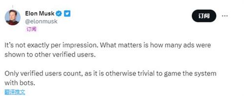 有一名擁有75萬粉絲的推特博主要是自己最近已經收到了2.4萬美元的分成,另外他透露從2023年的2月份開始,他推測平臺中所發布的動態,截止到目前為止的瀏覽量,一共達到了21.8萬。有媒體經過統計計算推測出大約10億瀏覽量就可以獲得1萬美元的分成,馬斯克在媒體評論區內強調瀏覽量并不是分成的主要條件,最終收益的多少主要取決于創作者展示的廣告。