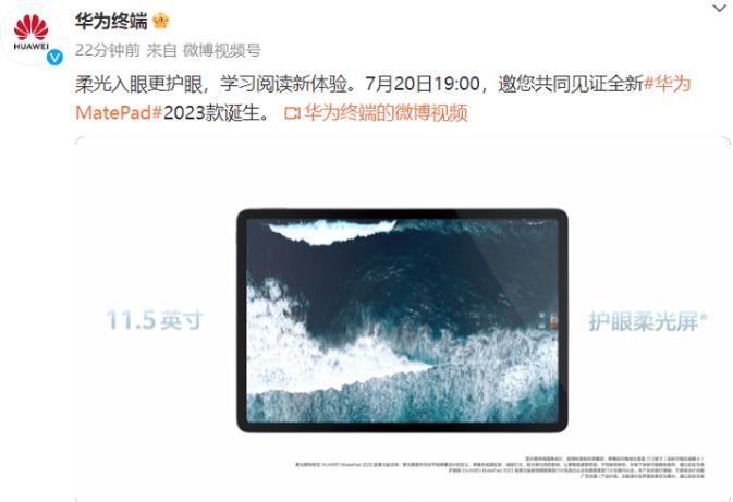 華為終端今日宣布,華為新款平板MatePad 2023將于7月20日正式發布。官方宣傳語強調了其柔光入眼的特點,為用戶帶來全新的學習和閱讀體驗。此外,該平板的Geekbench跑分數據也曝光了。