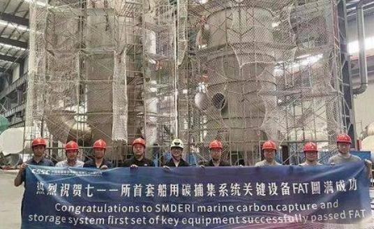 2023年7月19日,中國船舶七一一所成功完成首套船用碳捕集系統關鍵設備的FAT驗收,這套設備適配于15000TEU大型集裝箱船,具備二氧化碳捕捉、液化以及儲存等功能。