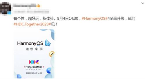 在北京時間2023年的7月26日,HarmonyOS官方在微博平臺中的賬號發文表示HarmonyOS 4.0已經定檔將,將會在2023年的8月4日正式發布,在近期華為將會在第5屆華為開發者大會中展示HarmonyOS 4.0所有更新的內容。在這之前華為公司官方就已經推出了HarmonyOS 4.0的開發者測試版本,據了解該版本的鴻蒙系統將會增加全新的交互方式和動畫效果。