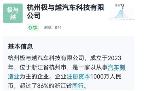 在北京時間2023年8月14日晚上,吉利汽車品牌和百度科技公司一同打造的汽車機器人戰略合作項目發布了汽車機器人品牌極越,在這之前有消息透露兩家合作打造的汽車品牌將會命名為集度。極越品牌背后的公司是杭州極與越汽車科技有限公司,在2023年的8月9日正式成立,在公司的股份架構中吉利汽車一共擁有65%的股份,百度集團擁有35%的股份公司的法人和公司的執行董事長是來自于吉利控股集團的高級副總裁張權。