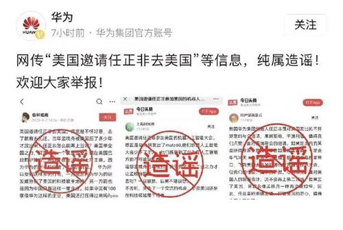 9月5日,華為官方頭條賬號發布一條推文,這條推文回應近期網絡上流傳“美國邀請任正非去美國”的相關消息內容,華為全部都做以否認,并且聲稱純屬造謠。