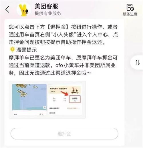 如果你也想要退還摩拜押金,可以在美團(tuán)APP上搜索美團(tuán)單車,進(jìn)入個(gè)人中心之后,點(diǎn)擊我的押金,顯示有299元的美團(tuán)單車押金,直接點(diǎn)擊申請(qǐng)退款就可以。摩拜單車現(xiàn)在已經(jīng)正式更名為美團(tuán)單車,之前等摩拜單車押金,可以通過以上的渠道退款。如果在操作的過程中有任何的問題,也可以在美團(tuán)APP的客服中心咨詢?cè)诰€客服,會(huì)為用戶做耐心的解答。在2020年12月14日,摩拜單車就已經(jīng)停止服務(wù),正式更名為美團(tuán)單車。