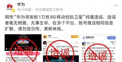 近期有博主在B站,百度APP以及微博等相關(guān)平臺(tái)上發(fā)布,稱華為要發(fā)射1萬(wàn)顆6G衛(wèi)星打造國(guó)產(chǎn)星鏈計(jì)劃的消息。這一消息也快速的登上熱搜榜,華為在消息發(fā)出不久之后,就通過集團(tuán)官方賬號(hào)發(fā)布聲明:網(wǎng)傳華為將發(fā)射1萬(wàn)枚6G移動(dòng)低軌衛(wèi)星,純屬造謠,造謠者毫無(wú)根據(jù),無(wú)事生非,在多個(gè)平臺(tái)賬號(hào)推送相同信息擴(kuò)散,請(qǐng)勿信勿傳,果斷舉報(bào)。