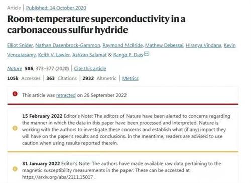 在回收聲明中指出主要原因是因為所發表的論文沒有準確反映研究材料的來源,所進行的實驗測量數據等等。這篇論文從發稿到被撤回,僅僅時隔8個月的時間,同時也是論文作者迪亞斯第3篇被撤回的論文。期刊的相關負責人也在聲明中明確指出:“同行評議程序無法發現像這樣精準撰寫的論文是否反映了所開展的研究。”迪亞斯是高壓物理學領域國際公認的科學家,研究成果也非常多。