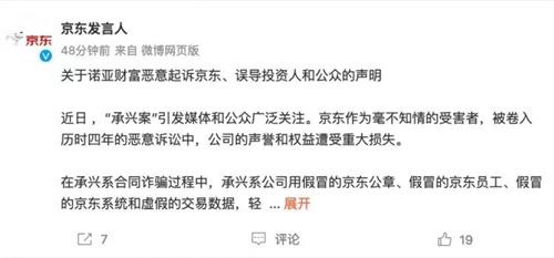12月4日,京東通過官微針對300億“承興系”詐騙案發布聲明。京東表示:承興系詐騙案引發媒體和公眾廣泛關注。京東作為毫不知情的受害者,被卷入歷時4年的惡意訴訟中,公司的聲譽和權益遭受到重大損失。