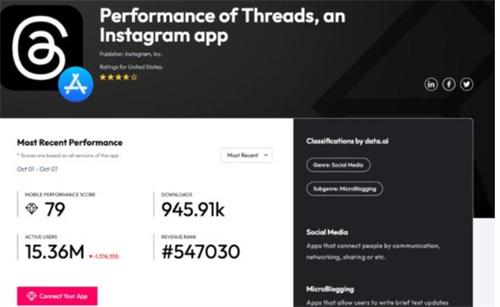 Apptopia認為,Threads平臺在最近一段時間內的下載量增長,有可能是因為Meta公司已經開始為Threads平臺投放廣告。Apptopia提供的報告中指出,從2023年9月份截止到目前為止,x平臺中的新增下載量達到了2,700萬次,而Threads平臺的新增下載量達到了4,100萬次。不過因為x在新興市場的應用商店中依舊沒有更改名稱,所以統計數據中也包括推特平臺的新增下載量。