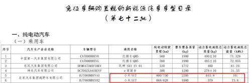 在北京時(shí)間2023年12月12日,我國工信部發(fā)布的《免征車輛購置稅的新能源汽車車型目錄(第七十二批)》中包含了小米汽車SU7的產(chǎn)品配置信息。根據(jù)報(bào)告信息顯示,小米汽車SU7的生產(chǎn)方是北京汽車集團(tuán)越野車有限公司,該輛車型一共有兩個(gè)版本,主要的區(qū)別在于電池包的容量和續(xù)航里程。兩個(gè)版本的電池包容量分別是73.6千瓦時(shí)和101千瓦時(shí),前者的續(xù)航里程能夠達(dá)到668公里,后者的續(xù)航里程能夠達(dá)到800公里。