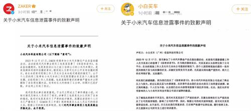 在北京時(shí)間2023年12月20日,ZAKER在官方微博發(fā)布了《關(guān)于小米汽車信息泄露事件的致歉聲明》,在聲明中官方指出,現(xiàn)在已經(jīng)開除了汽車事業(yè)部的員工包某某,而且公司對(duì)于這名員工永不錄用。在前幾日小米汽車的實(shí)車拍攝現(xiàn)場(chǎng)圖片在社交平臺(tái)中被曝光,當(dāng)時(shí)猜測(cè)是因?yàn)槊襟w在拍攝現(xiàn)場(chǎng)圖片時(shí)泄露。