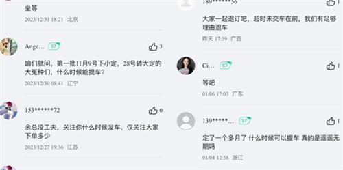 據(jù)了解,鴻蒙智行已經(jīng)給這些還沒(méi)有提到車(chē)的準(zhǔn)車(chē)主提供了補(bǔ)償方案,如果車(chē)輛交付延期,車(chē)主每天都可以獲得200元的補(bǔ)償金,最高不能超過(guò)1萬(wàn)元,補(bǔ)貼對(duì)象包括從2023年11月28日到2024年1月15日已經(jīng)提交大定訂單的用戶(hù)。