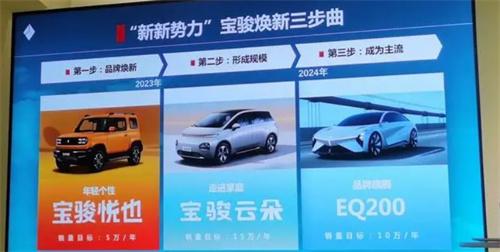 曾在2023年的7月份,周钘通過社交平臺表示,如果想買ET7,奔馳EQE或者Model S的消費者可以再等一等,因為寶駿EQ200車型在2024年就要正式上市。周钘透露,寶駿EQ200屬于純電動中大型轎車,公司對于這款車型的年度銷量目標為10萬輛,所以很有可能會搭載最高級別的配置和技術,包括鴻蒙座艙,不過現在這一消息還并沒有得到官方的證實。