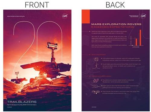 美國宇航局于1月26日發布海報和推文,慶祝機遇號和勇氣號火星探測器在火星成功登陸20周年。這兩個火星探測器在火星登錄的時間為2004年1月,分別在火星的兩側登陸,幫助科學家們了解火星,探索火星,在火星表面展開各項科學考察。
