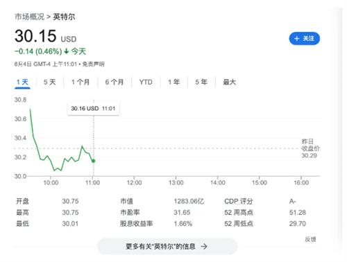盡管英特爾發(fā)布了新一代芯片,但市場(chǎng)反應(yīng)并不熱烈。英特爾股價(jià)周二盤(pán)中下跌0.46%,報(bào)30.15美元。相較之下,英偉達(dá)和AMD在AI芯片市場(chǎng)的地位依然強(qiáng)勁,Meta、微軟和谷歌等科技巨頭也大量采購(gòu)了英偉達(dá)芯片。