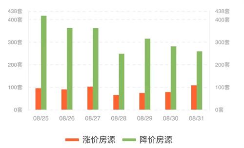 價格下調(diào)的房源仍然占主流,根據(jù)諸葛找房平臺數(shù)據(jù)顯示在深圳市出臺“認房不認貸”政策的第1天深圳市降價房源是259套。近一周的時間漲價的房源基本上在100套以下,而降價的房源基本上維持在250套以上。