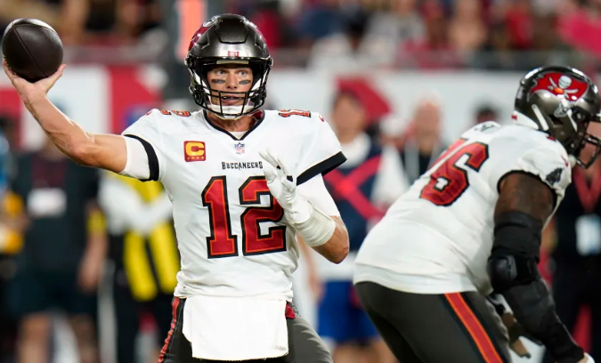 布雷迪在上半場后期被解雇,失球?qū)е虑蹰L隊觸地得分。這位 45 歲的四分衛(wèi)留在了比賽中,完成了 52 次傳球中的 39 次傳球,385 碼,3 次達(dá)陣并且沒有被攔截。