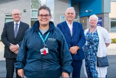 LR:喬治·霍爾,EGCarter合同經理;教育部內閣成員菲利普·羅賓遜議員;Robyn-LeeGibb,校長;學院信托臨時首席執行官斯蒂芬布拉德肖;格洛斯特郡議會普遍調試負責人克萊爾·梅德蘭(ClareMedland)