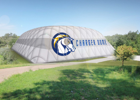 Charger Dome將是一個100,400平方英尺的充氣結構,提供草皮運動場,3至4車道的賽道,特許權和其他住宿。它將位于瓜爾內里練習場目前所在的校園西側。一個25,000平方英尺的停車場也將伴隨著該結構。