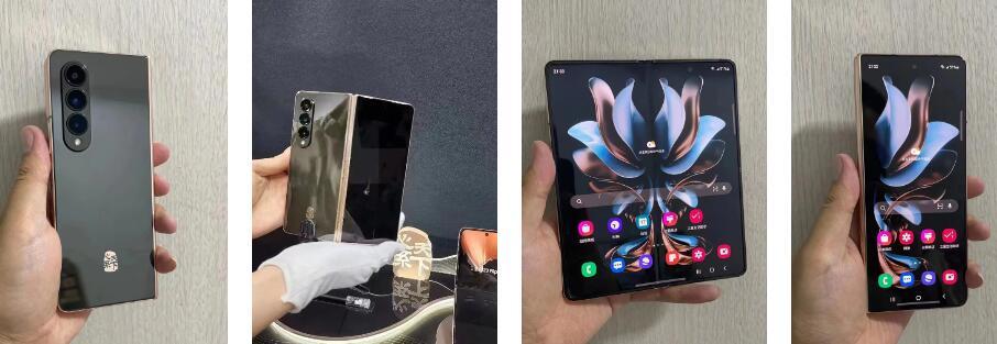 這些圖像顯示,銀河Z Fold 4的基礎設計沒有變化。配色方案也與去年的三星W22相同,帶有拋光的灰色背面,中間有一個寫著“心向世界”的標志,以及鍍金的邊緣和鉸鏈。其中一張圖片顯示了鍍金的背面,這可能是W23的變體。