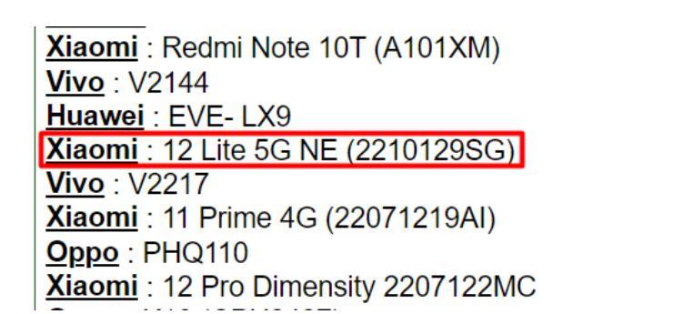 型號為2210129SG的小米手機(jī)于9月獲得了FCC當(dāng)局的認(rèn)證。后來,它也在新加坡的IMDA和歐洲的EEC認(rèn)證平臺上被發(fā)現(xiàn)。現(xiàn)在,相同的設(shè)備已經(jīng)出現(xiàn)在IMEI數(shù)據(jù)庫中,具有小米12 Lite 5G NE綽號。