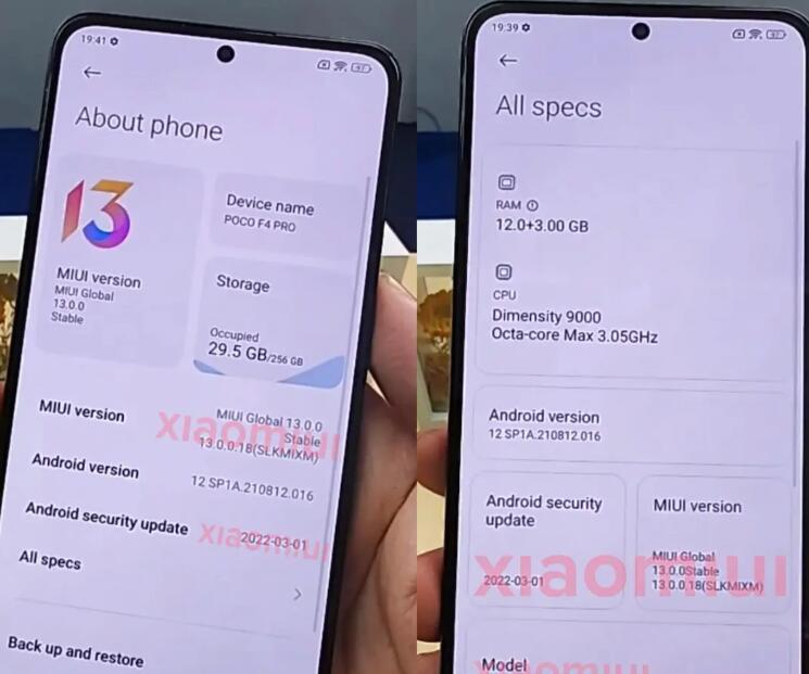 設(shè)備顯示為運(yùn)行 MUI 13 的全球版本。該設(shè)備將由聯(lián)發(fā)科技 Dimensity 9000 處理器指揮,在此版本中,由 12 GB RAM 提供支持。