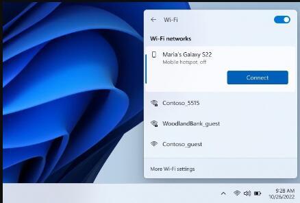 “當您的手機在范圍內時,它將出現在PC上的Wi-Fi網絡列表中,單擊一下即可打開手機的熱點并連接到它。不再需要記住和輸入密碼或在手機上搜索熱點設置。這提供了一種更簡單、更快捷的方法,可以在您在旅途中反復連接到您的熱點。