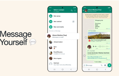 元擁有的消息傳遞應用程序 WhatsApp 周一宣布了一項新功能,該功能將允許用戶自己發送消息。該公司表示即將推出的功能稱為“給自己發消息”,用戶可以使用自己的帳戶發送消息。這些消息包括提醒、待辦事項列表、圖片、音頻文件、文檔。
