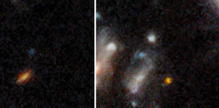 就像望遠鏡發現的許多遙遠的星系一樣,距離最遠的兩個競爭者看起來又小又亮,這表明它們是緊湊的圓盤狀物體,而不是散亂的散亂的。它們的整潔和明亮表明,早期的星系已經從許多恒星中形成了組織良好的結構,而不是像哈勃太空望遠鏡早期的研究表明的那樣扭曲和微弱。