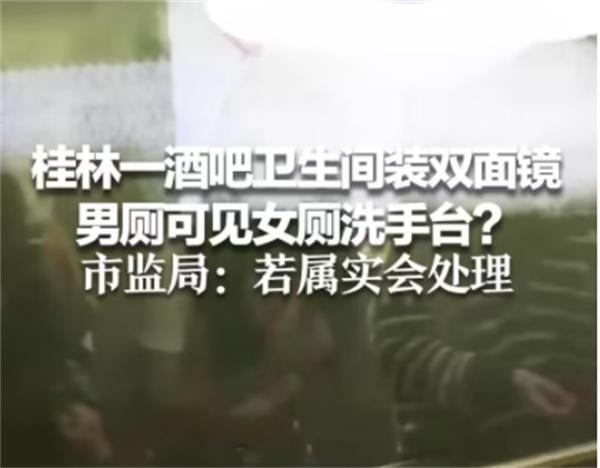 在2023年1月13日紅星新聞媒體發布了最新消息,在網上大量傳播一則關于“桂林某一家酒吧的衛生間裝單向玻璃,男士們在如廁的時候,可看見女廁的洗手臺”,這則話題還配備了當時網友拍攝的視頻,看視頻,在短時間內瘋狂在各大網絡平臺上傳播,引發了眾網友的熱議,此話題不斷的發酵,引起了相關部門的重視,之后桂林市市場監督管理局的工作人員,也對此事作出了回應,表示視頻屬實,會做出處理。