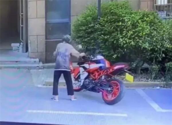 當時陳先生將自己的摩托車放在了小區單元樓門口,摩托車的落地價是6萬多元,有100多公斤,如果不是大力碰撞很難倒地,陳先生到物業調取了當時的監控,從監控中顯示,在2022年6月25日下午最近6:00的時候,這位老人經過摩托車時,使勁將摩托車推倒然后離開。