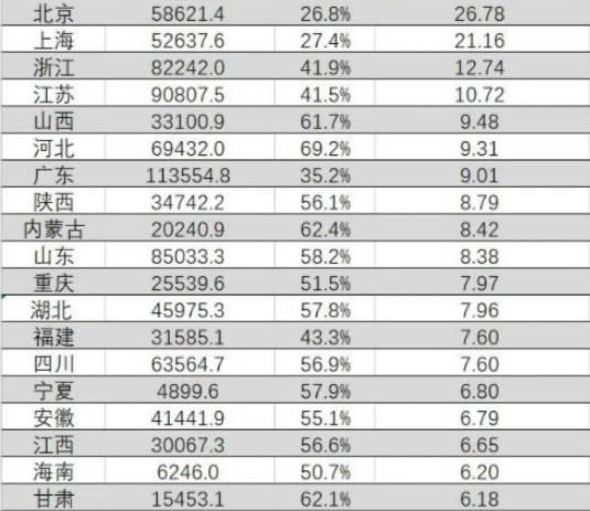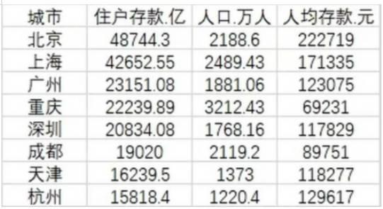 北京住戶人均存款高達26.78萬元,排在首位,排在第2位的是上海,上海地區的平均住戶存款有21.16萬元,浙江省也12.7萬元排在第3位,其次,分別由江蘇,山西,河北等地區的人均住戶存款分別為10.72萬元,9.48萬元和9.31萬元。