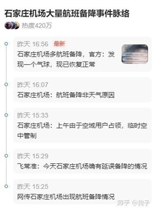 針對這一問題,民航華北局對此表示當時在石家莊正定國際機場上空發現了一個不明飛行物,最后經過偵查,發現這個不明飛行物是一個氣球,隨后正定國際機場恢復正常,對于該氣球的具體情況,華北民航局的值班人員表示并不是很了解。