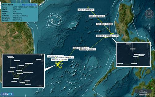 美軍海洋監視船勝利號于2023年1月21日進入南海活動。從2023年2月9日至今美軍勝利號在南海群島西北部海域展開高強度的活動。據悉,海洋監視船屬于一種執行特殊任務的船只,由軍事海運司令部所管轄,主要負責的就是支持反潛作戰和偵察水下目標。