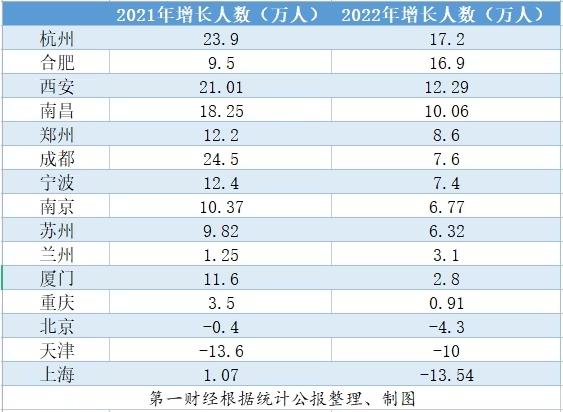 統(tǒng)計數(shù)據(jù)顯示,15個大城市中,大多數(shù)城市的人口增長相較往年都有明顯減緩,其中成都、鄭州和杭州等中心城市的增長幅度尤其明顯。2010年到2020年,西安常住人口年均增長近45萬人,但2022年增量幾乎減半。成都人口增量更是降到10萬人以下,創(chuàng)下本世紀以來年度人口增長最低。在15個城市中,僅有合肥和蘭州的人口增量有所增長,而重慶則出現(xiàn)了負增長。大城市人口增長放緩的大背景是人口進入低增長或負增長,但中西部省會城市對周邊的影響力依舊比較大。
