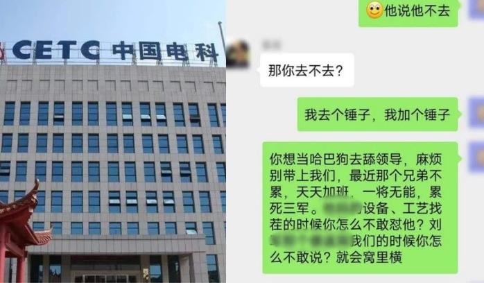 近日,網(wǎng)絡(luò)上流傳一段聊天記錄,顯示四川德陽經(jīng)開區(qū)某科技公司員工陳某某在微信群中拒絕領(lǐng)導(dǎo)強(qiáng)制加班,并引發(fā)了部門同事的共鳴。由于聊天記錄中出現(xiàn)“CETC”,外界一度認(rèn)為陳某某為中國電子科技集團(tuán)有限公司(以下簡稱“中國電科”)的員工。然而,經(jīng)過調(diào)查,有知情人士稱陳某某并非中國電科員工,相關(guān)聊天記錄疑為偽造。