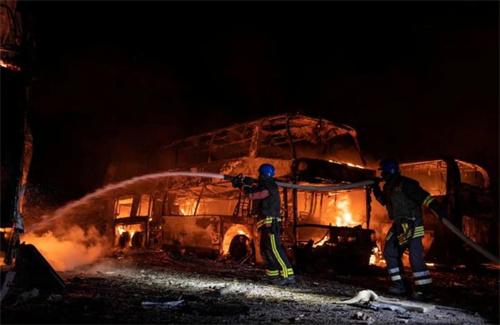 基輔市長克里琴科表示,基輔上空墜落的碎片引發了幾輛汽車的火災,并損壞了首都西部索洛米揚斯基區的一棟建筑物,共有3人受傷。