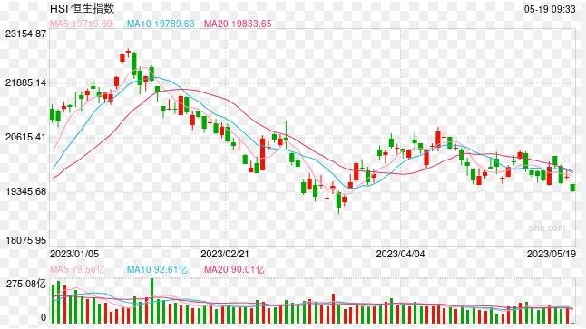 金融界5月19日報道,今日港股市場以低開為主,恒生指數下跌0.97%,報19535.49點,恒生科技指數下跌1.25%,報3868.3點,國企指數下跌1.11%,報6641.23點,紅籌指數下跌0.18%,報3970.72點。