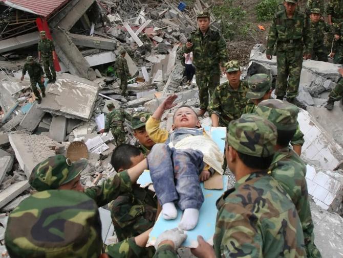 回顧到2008年,汶川特大地震發(fā)生后,小郎錚時(shí)年3歲,他在北川災(zāi)區(qū)被埋20余個(gè)小時(shí),被救出時(shí)左臂受傷。當(dāng)時(shí),他躺在一塊用小木板制成的臨時(shí)擔(dān)架上,用右手向抬著他的8位解放軍戰(zhàn)士敬禮的場(chǎng)景通過照片和影像傳遍全國,成為堅(jiān)韌不拔的民族精神的真實(shí)寫照。