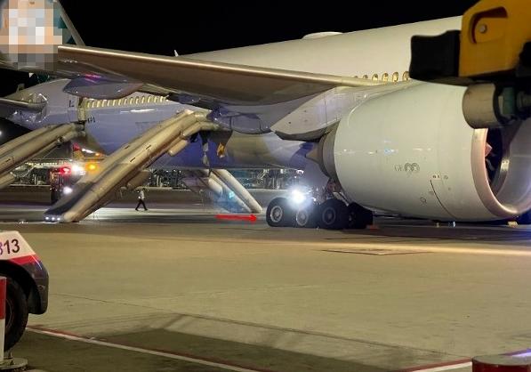 現場短片顯示,事發后,國泰航空的飛機逃生門打開,乘客順著逃生梯離開,其中多名乘客失去平衡摔倒,部分人受傷。相關圖片顯示飛機尾部輪胎凹陷,明顯變形。