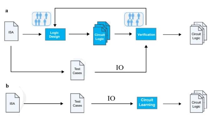 這個創(chuàng)新的CPU是基于BSD二元猜測圖算法設(shè)計而來的。研究人員通過AI技術(shù)直接從“輸入-輸出(IO)”自動生成CPU設(shè)計,無需工程師提供代碼或自然語言描述。換句話說,它將CPU自動設(shè)計問題轉(zhuǎn)化為“滿足輸入-輸出規(guī)范的電路邏輯生成問題”,只需測試用例就可以生成滿足需求的電路邏輯,省去了傳統(tǒng)設(shè)計流程中的邏輯設(shè)計與驗證環(huán)節(jié)。