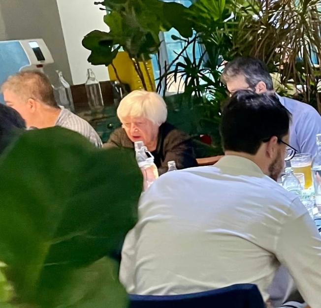 根據消息,美國財政部部長珍妮特·耶倫于7月6日乘機抵達北京,開始了為期四天的訪華行程。據微博網友和餐廳"一坐一忘"官方微博賬號的報道,耶倫抵達北京后,選擇了位于三里屯的一家名為"一坐一忘"的云南菜館,作為她在北京的第一餐。耶倫展現了她熟練的筷子技巧,并表現出對特色菌子的喜愛,這引起了眾多網友的關注。