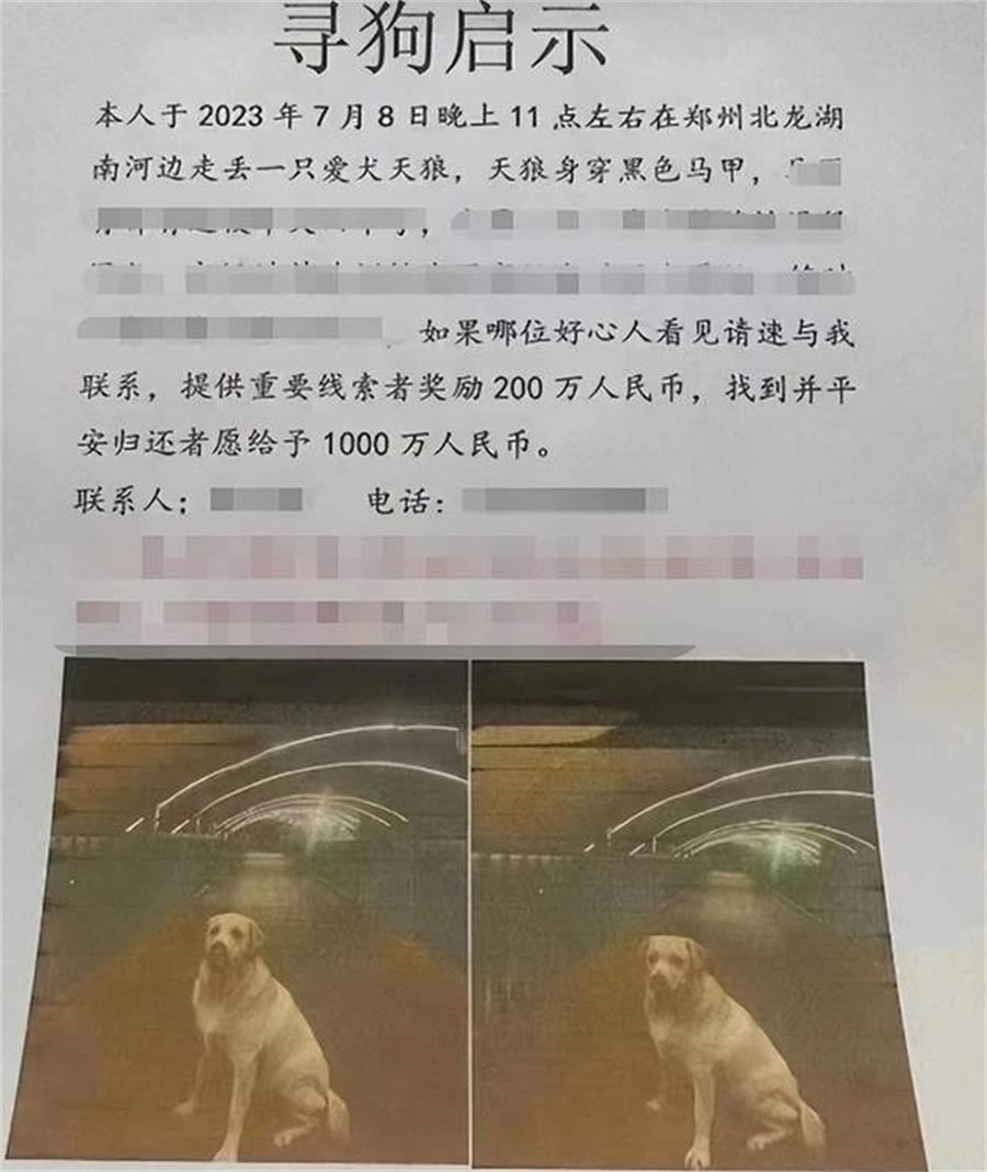 7月9日,鄭州流浪動物領(lǐng)養(yǎng)中心發(fā)布了一則特殊的尋狗啟事,引發(fā)了廣大網(wǎng)友的關(guān)注和熱議。根據(jù)啟事內(nèi)容,一只名為天狼的8歲雄性狗狗在7月8日晚上11點左右在鄭州北龍湖南河邊走丟。狗主人表示,如果有提供重要線索的人,將獎勵200萬人民幣;如果找到并平安歸還狗狗,將獎勵1000萬人民幣。