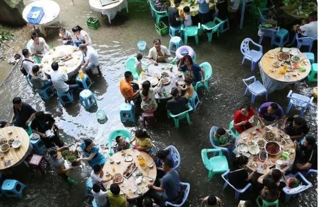 河南新鄉遭暴雨襲擊!賓客積水中享用盛宴,引發網友熱議