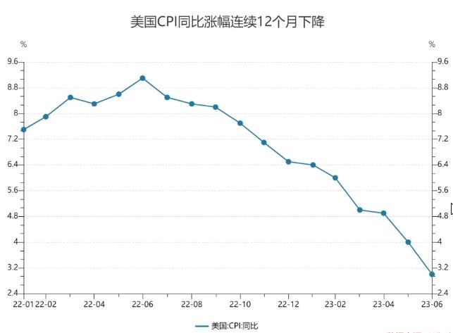 根據(jù)美國勞工統(tǒng)計局于7月12日發(fā)布的數(shù)據(jù)顯示,美國6月消費者物價指數(shù)(CPI)同比增長3%,略低于市場預期的3.1%,前值為4%。這是自2022年6月以來連續(xù)12個月下降的最小增幅,也是自2021年3月以來的最低漲幅。這一數(shù)據(jù)的公布導致美元指數(shù)回落,離岸人民幣對美元匯率走高,一度逼近7.16關口。