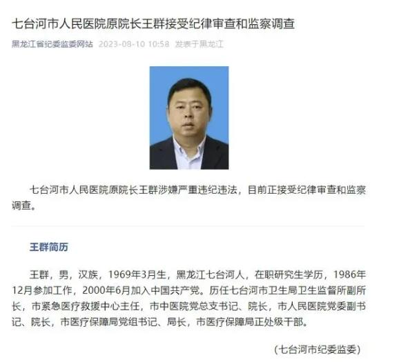 醫療領域一直是社會關注的焦點,近期不斷曝光的醫院高層被查事件再次將腐敗問題置于輿論的中心。近日,黑龍江省紀委監委網站發布消息,七臺河市人民醫院原院長王群因涉嫌嚴重違紀違法正接受審查;其同時任職的七臺河市人民醫院黨委原書記李春光也因違規接受旅游活動安排問題被查。不久前,揭陽市婦幼保健院原黨支部書記、院長劉建志也被“雙開”,涉及多起嚴重違紀違法問題。